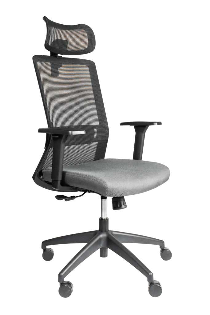 - Cabecera ajustable tapizada en mesh.